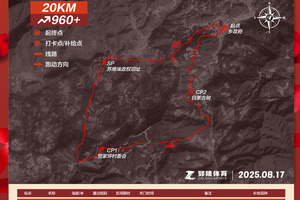 3.精英组20km:乡政府-209国道-土管所左边上山-横跨209国道-贺家湾-下湾苏维埃政权旧址(SP1)-郭家梁子-贺家坪战役旧址-贺家坪村委会(CP1)-毛家垭-白茶古树(CP2)-火石垭-官田岭-红军路-终点(乡政府)。全程约20公里,累计爬升960米+。